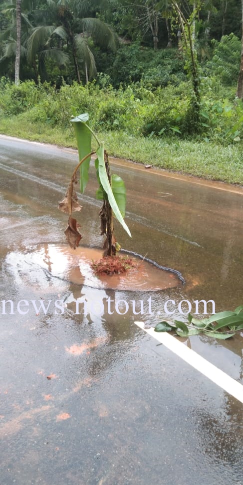ಅರಂತೋಡು: ಇಲ್ಲಿನ ತೆಕ್ಕಿಲ್ ಹೆಚ್.ಪಿ.ಗ್ಯಾಸ್ ಗೋಡಾನ್ ಬಳಿ ಹಾದು ಹೋಗುವ ರಾಷ್ಟ್ರೀಯ ಹೆದ್ದಾರಿ ರಸ್ತೆಯ ನಡುವಿನಲ್ಲಿ ನೀರು ತುಂಬಿದ ಬೃಹತ್ತಾದ ಗುಂಡಿ ಸೃಷ್ಟಿಯಾಗಿದೆ. ವಾಹನ ಸವಾರರು ಚಾಲನೆ ಮಾಡುವಾಗ ಜಾಗೃತೆ ವಹಿಸದೇ ಹೋದರೆ ಭಾರಿ ಅವಘಡ ಸಂಭವಿಸುವ ಸಾಧ್ಯತೆ. ಇದೀಗ ಆ ಗುಂಡಿಗೆ ಸ್ಥಳೀಯರು ಬಾಳೆಗಿಡ ನೆಟ್ಟು ಪ್ರತಿಭಟಿಸಿದ್ದಾರೆ. ಇನ್ನಾದರೂ ರಾಜ್ಯ ಹೆದ್ದಾರಿ ಇಲಾಖೆಯವರು ಎಚ್ಚೆತ್ತು ಕ್ರಮ ಕೈಗೊಳ್ಳಬಹುದೇ? ಸರಿಯಾಗಿ ಚರಂಡಿ ವ್ಯವಸ್ಥೆ ಇಲ್ಲದೇ ನೀರು ರಸ್ತೆಯ ಮೇಲೆಯೇ ಹರಿಯುತ್ತಿರುವುದರಿಂದ ಇಂತಹ ಗುಂಡಿ ನಿರ್ಮಾಣವಾಗಿದೆ ಎಂದು ಸ್ಥಳೀಯರು ಆಕ್ರೋಶ ವ್ಯಕ್ತಪಡಿಸಿದ್ದಾರೆ.