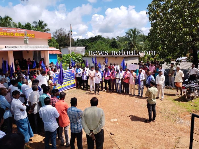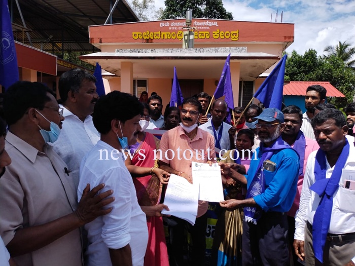 ನೆಲ್ಯಾಡಿ: ಗೋಳಿತ್ತೊಟ್ಟು ಗ್ರಾಮ ಪಂಚಾಯತ್ ನ ದಲಿತ ಪಿಡಿಒ ವರ್ಗಾವಣೆ ಮಾಡಿದ್ದನ್ನು ಖಂಡಿಸಿ ಕರ್ನಾಟಕ ದಲಿತ ಸಂಘರ್ಷ ಸಮಿತಿ ಪುತ್ತೂರು, ಕಡಬ ತಾಲೂಕು ಸಮಿತಿ ಹಾಗೂ ಗೋಳಿತ್ತೊಟ್ಟು ಗ್ರಾಮಸ್ಥರು ಅಕ್ಟೋಬರ್ 11 ರಂದು ಬೆಳಗ್ಗೆ ಗೋಳಿತ್ತೊಟ್ಟು ಗ್ರಾಮ ಪಂಚಾಯತ್ ಎದುರು ಬೃಹತ್ ಪ್ರತಿಭಟನೆ ನಡೆಸಿದರು.