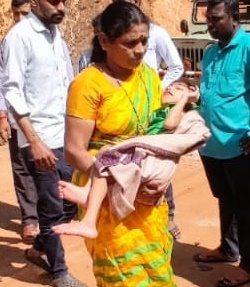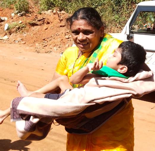 ಮಗವನ್ನು ಆಶ್ರಯ ಕೇಂದ್ರಕ್ಕೆ ಎತ್ತಿಕೊಂಡು ಹೋಗುತ್ತಿರುವ ಸುಶೀಲಾ ಪೆರುಮುಂಡ