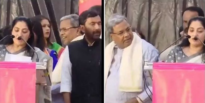 ನ್ಯೂಸ್ ನಾಟೌಟ್ : ಫೇಸ್ ಬುಕ್, ವಾಟ್ಸಾಪ್, ಟ್ವಿಟ್ಟರ್, ಇನ್ಸ್ಟಾಗ್ರಾಂ ಎಲ್ಲಿ ನೋಡಿದರೂ ಸೋಮವಾರ (೧೬) ಮಧ್ಯಾಹ್ನದಿಂದ ಮಾಜಿ ಸಿಎಂ ಸಿದ್ದರಾಮಯ್ಯನವರ ಲುಕ್ ವಿಡಿಯೊ ಹರಿದಾಡುತ್ತಿದೆ. ಬೆಂಗಳೂರಿನ ಅರಮನೆ ಮೈದಾನದಲ್ಲಿ ಕಾಂಗ್ರೆಸ್ ವತಿಯಿಂದ ನಡೆದ ನಾ ನಾಯಕಿ ಸಮಾವೇಶದಲ್ಲಿ ನಿರೂಪಕಿ ಲಾವಣ್ಯ ಬಲ್ಲಾಳ್ ಕಡೆಗೆ ಸಿದ್ದು ನೋಟಕ್ಕೆ ಜನರು ಇದೀಗ ಬಗೆ ಬಗೆಯ ಕಾಮೆಂಟ್ ಮಾಡುತ್ತಿದ್ದಾರೆ.