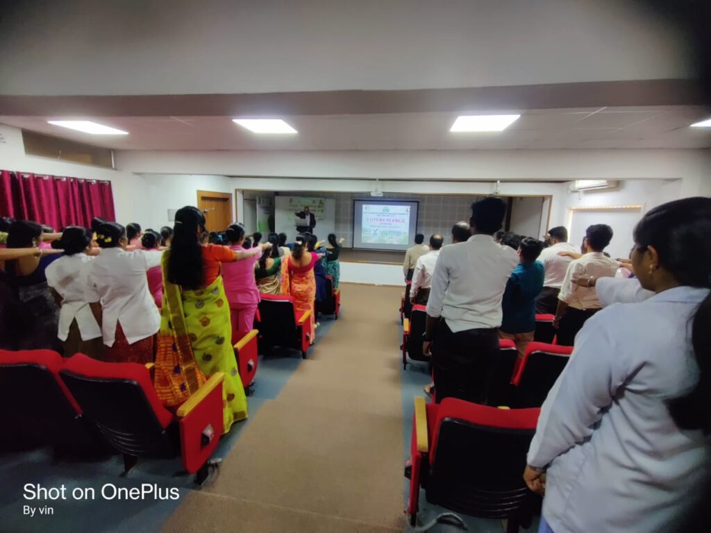 ನ್ಯೂಸ್ ನಾಟೌಟ್ : ಭಾರತ ಚುನಾವಣಾ ಆಯೋಗದ ನಿರ್ದೇಶನದಂತೆ, ರಾಜೀವ್ ಗಾಂಧಿ ಆರೋಗ್ಯ ವಿಜ್ಞಾನಗಳ ವಿಶ್ವವಿದ್ಯಾಲಯದ ಮಾರ್ಗದರ್ಶನದಲ್ಲಿ ರಾಷ್ಟ್ರೀಯ ಮತದಾರರ ದಿನ-2023ನ್ನು ಕೆವಿಜಿ ಆಯುರ್ವೇದ ಮೆಡಿಕಲ್ ಕಾಲೇಜು ಮತ್ತು ಆಸ್ಪತ್ರೆ ಸುಳ್ಯದಲ್ಲಿ ಆಚರಿಸಲಾಯಿತು. ಸಂಸ್ಥೆಯ ಪ್ರಾಂಶುಪಾಲರಾದ ಪ್ರೊ. ಡಾ. ಲೀಲಾಧರ್ ಡಿ. ವಿ.ಯವರು ಪ್ರತಿಜ್ಞಾವಿಧಿ ಬೋಧಿಸಿ, ಮತದಾನದ ಮಹತ್ವದ ಬಗ್ಗೆ ತಿಳಿಸಿದರು.