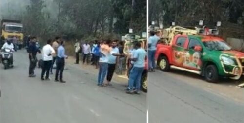 ಬೈಕ್ ಮತ್ತು ಬಿಜೆಪಿ ರ್ಯಾಲಿಯ ಪ್ರಚಾರದ ವಾಹನದ ನಡುವೆ ಡಿಕ್ಕಿ ಸಂಭವಿಸಿದೆ. ಡಿಕ್ಕಿಯಾದ ರಭಸಕ್ಕೆ ಸ್ಥಳದಲ್ಲೇ ಬೈಕ್ ಸವಾರ ಮೃತಪಟ್ಟಿದ್ದಾನೆ. ಮೃತ ಬೈಕ್ ಸವಾರನನ್ನು ಗುರುವಾಯನಕೆರೆ ಮೂಲದ ತರಕಾರಿ ನಾರಾಯಣ ಎಂಬವರ ಪುತ್ರ 35 ವರ್ಷದ ವಿಜಿತ್ ಎಂದು ಗುರುತಿಸಲಾಗಿದೆ. ಸ್ಥಳಕ್ಕೆ ಪೊಲೀಸರು ಆಗಮಿಸಿ ಪರಿಶೀಲನೆ ನಡೆಸಿದ್ದಾರೆ.ಈ ವೇಳೆ ನೂರಾರು ಮಂದಿ ಸ್ಥಳದಲ್ಲಿ ಜಮಾಯಿಸಿದ್ದರು.ಕೆಲಕಾಲ ರಸ್ತೆ ಸಂಚಾರಕ್ಕೂ ಅಡಚಣೆಯಾಗಿತ್ತು.