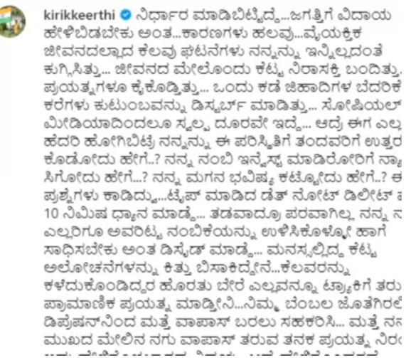 ಆತ್ಮಹತ್ಯೆಗೆ ನಿರ್ಧರಿಸಿದ್ರಾ ಖ್ಯಾತ ನಿರೂಪಕ ಕಿರಿಕ್ ಕೀರ್ತಿ, ವೈರಲ್ ಪೋಸ್ಟ್ ನಲ್ಲೇನಿದೆ?