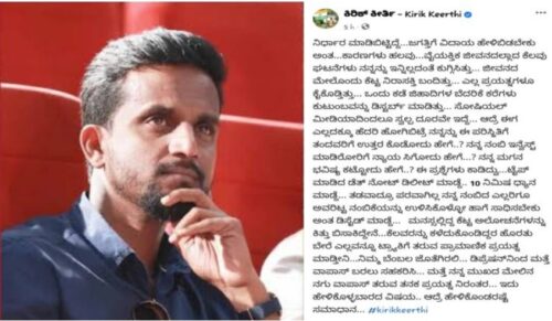 ಕಿರಿಕ್ ಕೀರ್ತಿ ತನ್ನ ವೈಯಕ್ತಿಕ ಜೀವನದಲ್ಲಿ ನಡೆದ ಕೆಲವು ಘಟನೆಗಳಿಂದ ಖಿನ್ನತೆಗೆ ಒಳಗಾಗಿದ್ದೆ ಎಂದಿದ್ದಾರೆ. ಜಿಹಾದಿಗಳ ಬೆದರಿಕೆ ಕರೆಗಳು ಕುಟುಂಬವನ್ನು ತುಂಬಾ ತೊಂದರೆಗೊಳಿಸಿದೆ ಎಂದು ಅವರು ಅದರಲ್ಲಿ ಹೇಳಿದ್ದಾರೆ. ಕಿರಿಕ್ ಕೀರ್ತಿ ಸಾಮಾಜಿಕ ಜಾಲತಾಣದಲ್ಲಿ ಸುದೀರ್ಘ ಪೋಸ್ಟ್ ನ್ನು ಹಂಚಿಕೊಂಡಿದ್ದು ಇದು ಬಾರಿ ವೈರಲ್ ಆಗಿದೆ.
