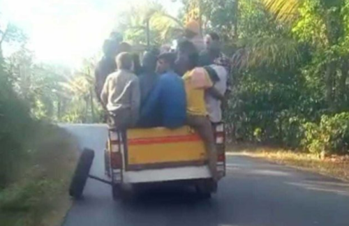 ಭಾರೀ ಅಪಘಾತವಾದರೂ ಕಾರ್ಮಿಕರು ಪಾರಾಗಿದ್ದಾರೆ ಎಂದು ತಿಳಿದು ಬಂದಿದೆ.ಎಮ್ಮೆಮಾಡು ಕೂರುಳಿ ಗ್ರಾಮದಿಂದ ತೋಟದ ಮಾಲಕರೊಬ್ಬರು ಕಾರ್ಮಿಕರನ್ನು ಸಾಗಿಸುತ್ತಿದ್ದಾಗ ವಾಹನದ ಆಕ್ಸಿಲ್ ತುಂಡಾಗಿದೆ. ಪರಿಣಾಮ ಚಕ್ರ ಕಳಚಿಕೊಂಡಿತು. ಈ ದೃಶ್ಯ ಸ್ಥಳೀಯ ಆಟೋ ಚಾಲಕರೊಬ್ಬರ ಮೊಬೈಲ್ನಲ್ಲಿ ಸೆರೆಯಾಗಿದೆ. ಸದ್ಯ ಈ ಫೋಟೊ ಬಾರಿ ವೈರಲ್ ಆಗಿದೆ.