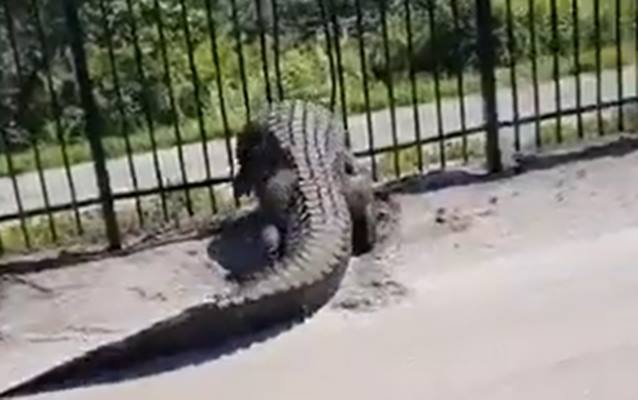 ನ್ಯೂಸ್ ನಾಟೌಟ್: ದೈತ್ಯ ಗಾತ್ರದ ಮೊಸಳೆಯೊಂದು ರಸ್ತೆಯಿಂದ ಇನ್ನೊಂದು ಬದಿಗೆ ಹೋಗುವ ಸಲುವಾಗಿ ಅಲ್ಲಿದ್ದ ಲೋಹದ ಬೇಲಿಯನ್ನೇ ತುಂಡರಿಸಿ ನುಗ್ಗುತ್ತಿರುವ ವಿಡಿಯೋ ಇದೀಗ ಎಲ್ಲೆಡೆ ವೈರಲ್ ಆಗಿದೆ. ಈ ವಿಡಿಯೋದಲ್ಲಿ ಮೊಸಳೆ ಬಲಶಾಲಿಯಾದ ಬೇಲಿಯನ್ನು ಕಷ್ಟಪಟ್ಟು ತುಂಡು ಮಾಡುತ್ತಿರುವುದನ್ನು ನೋಡಬಹುದು. ರೆಕ್ಸ್ ಚಾಪ್ಮನ್ ಅವರು ಟ್ವಿಟರ್ ನಲ್ಲಿ ಹಂಚಿಕೊಂಡ ಈ ವಿಡಿಯೋವನ್ನು ಫ್ಲೋರಿಡಾದಲ್ಲಿ ಚಿತ್ರೀಕರಿಸಲಾಗಿದೆ.