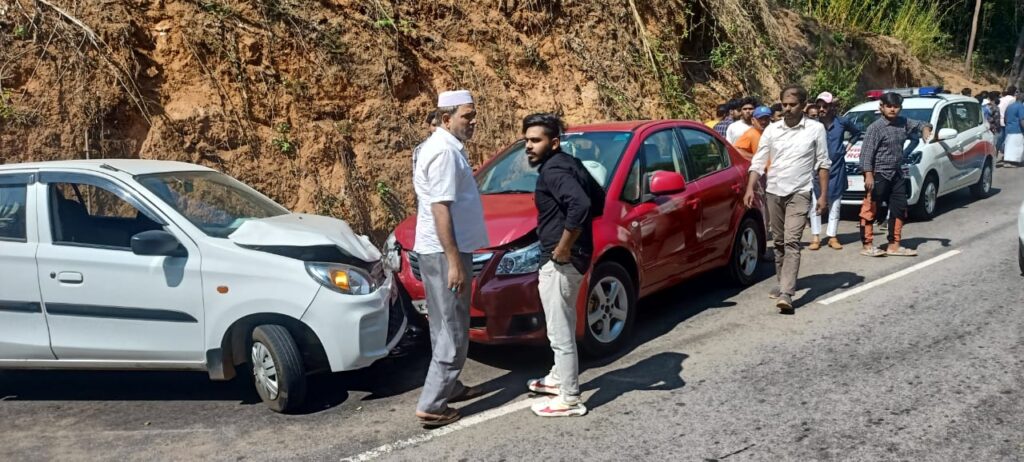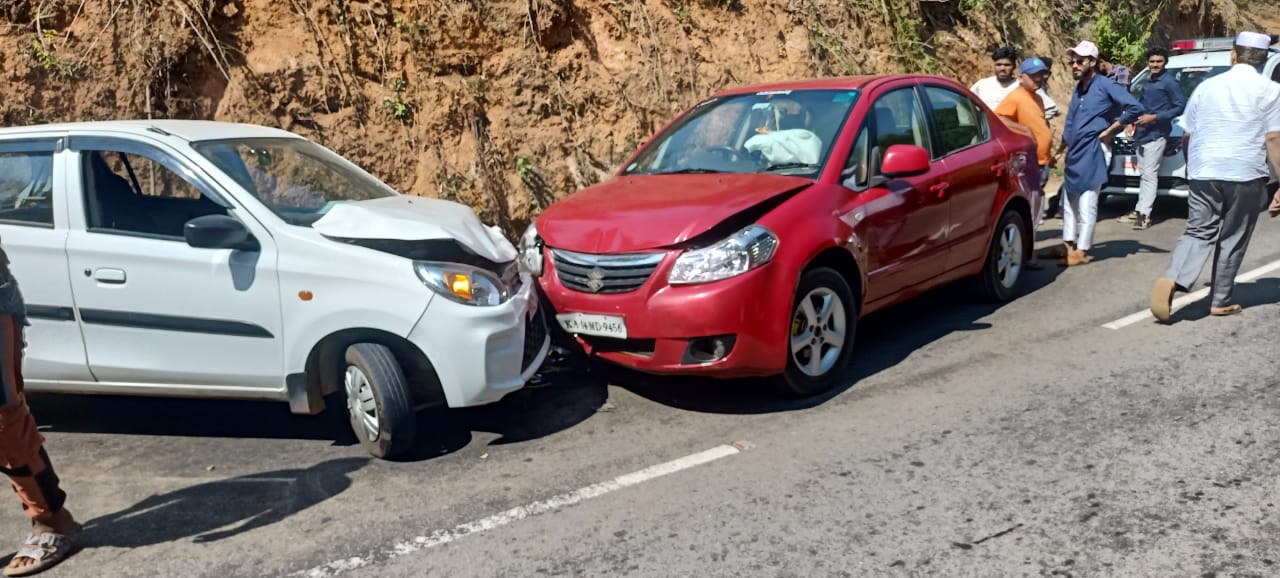 ಮಡಿಕೇರಿ: ಹೈಸ್ಪೀಡ್ ಓವರ್ ಟೆಕ್ ಯತ್ನ, ಕಾರುಗಳ ನಡುವೆ ಅಪಘಾತ