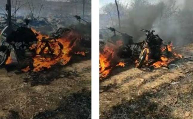ಅರಣ್ಯಕ್ಕೆ ಬೆಂಕಿ ನಂದಿಸಲು ಹೋಗಿದ್ದ ಅರಣ್ಯ ಇಲಾಖೆ ಸಿಬ್ಬಂದಿಗಳ ಬೈಕ್ ಹೊತ್ತಿ ಉರಿದಿದೆ. ರಸ್ತೆಯಲ್ಲಿ ನಿಲ್ಲಿಸಿದ 3 ಬೈಕ್ ಗೆ ಗಾಳಿಯ ರಭಸಕ್ಕೆ ಕಿಚ್ಚು ಬಿದ್ದಿದ್ದು, ಮೂರು ಬೈಕ್ ಗಳು ಧಗ ಧಗ ಹೊತ್ತಿ ಉರಿದು ಭಸ್ಮವಾಗಿದೆ ಎಂದು ವರದಿಯಾಗಿದೆ.